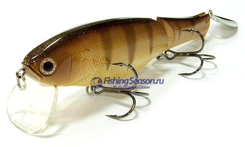 Длина 128 мм и вес 28 гр характеризуют Real California 128 как относительно маленькую приманку в этой категории. В отличие от крупных воблеров и дерева, которые требуют использование специализированных снастей, для ловли на Real California 128 вам будет достаточно удилища среднетяжелого класса (MH). Воблер можно назвать многоцелевым: поисковая приманка для прочесывания большой территории, при этом воблер производит волны на поверхности, а также для ловли в «золотое» время суток: утром и вечером. Real California отлично подходит как для больших открытых водоемов, так и маленьких диких озер. Один из секретов – звук, издаваемый благодаря двусоставной конструкции наряду с уникальной формой хвостовой блесны. На ваш выбор пластиковый хвостовой плавник или лепесток, которые легко заменяются. При медленной проводке Real California заглубляется примерно до 0,6 м.