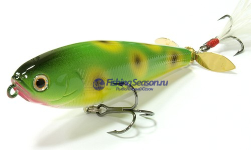 Приманка Wake Tail во многом повторяет конструкцию Splash Tail, но оснащается только одним задним пропеллером. Ее главной особенность является вмонтированный вертлюжок с шариковым подшипником. За счет него обеспечивается бесперебойное вращение пропеллера даже не небольшой скорости проводки. Wake Tail идеально подходит для ловли в сильно заросших водоемах.